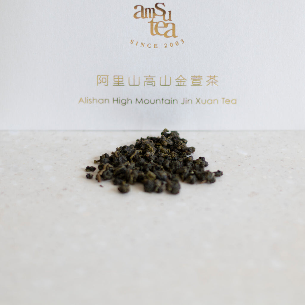 amsu tea オリジナルの味わい 阿里山高山金萱茶は、実際に台湾の茶園を訪れ、オーナーとの打ち合わせや日本国内でテイスティングを重ねた後生まれた“オリジナルの一杯”です。