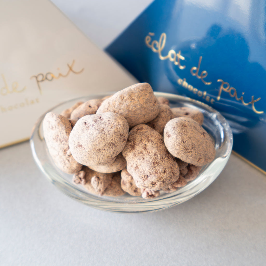 - 原材料:アーモンド(スペイン産)、チョコレート、カカオニブ、粗糖、ココアパウダー、植物油
